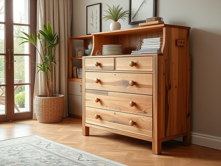 Для зберігання інструментів, матеріалів чи готових виробів комоди з дерева забезпечують організованість робочого місця.