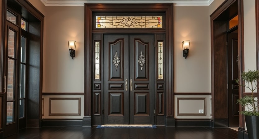 - безопасность – популярным решением для частных домов являются двойные двери, эстетические наружные и металлические усиленные внутренние;