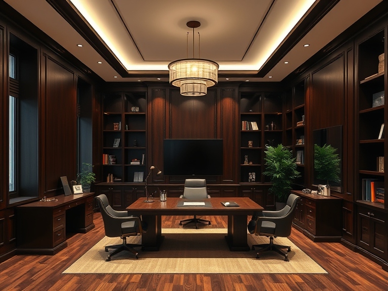 Натуральное дерево уже на протяжении нескольких столетий зарекомендовало себя как лучший материал для роскошного офиса руководителя или домашнего кабинета. Однако главное - учитывать не только эстетические детали, но и эргономику пространства, его задачи, отражение статуса. Мы создаём кабинеты из дерева под ключ, наполняя их эксклюзивной мебелью из ценных пород дерева и функциональными зонами: для ситуативных переговоров, с мини-баром или библиотекой, с местом для телеконференций или демонстрации наград. Обращайтесь к профессионалам, чтобы получить качественный проект.
