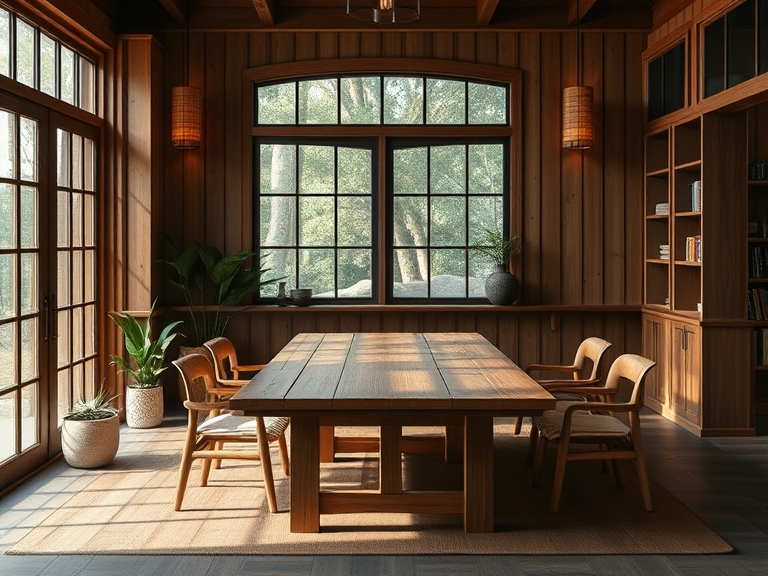 - Орех - дорогой, но эффектный материал с глубоким темным оттенком, добавляющий интерьеру роскоши.