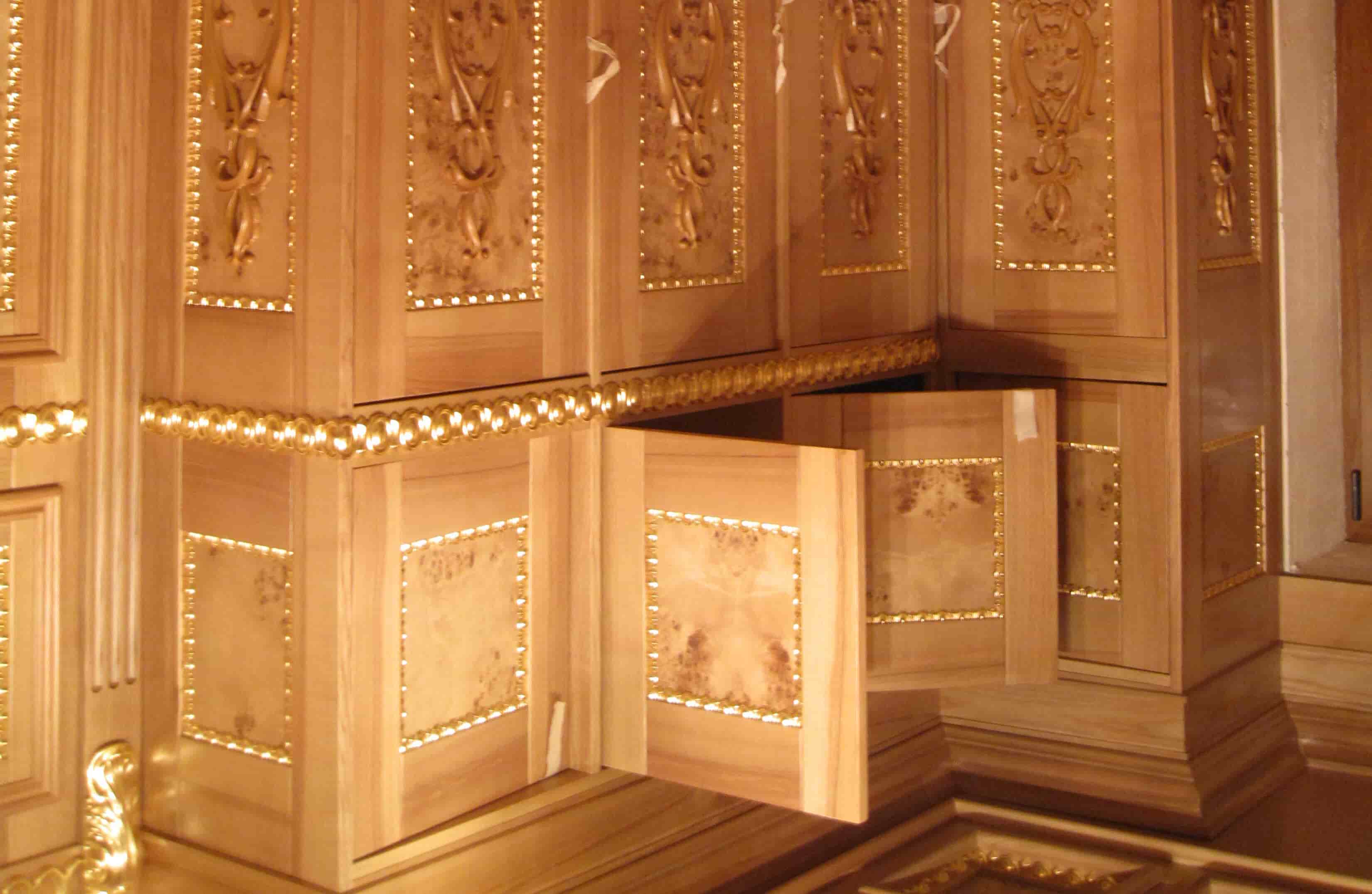 Среди них: ручная отделка дерева, интарсия и инкрустация, серебро, бронзирование и золочение, патинирование и т.д. Наш опыт способен превратить комнату в настоящий музейный экспонат уровня элитных доходных домов Старого Киева девятнадцатого столетия.